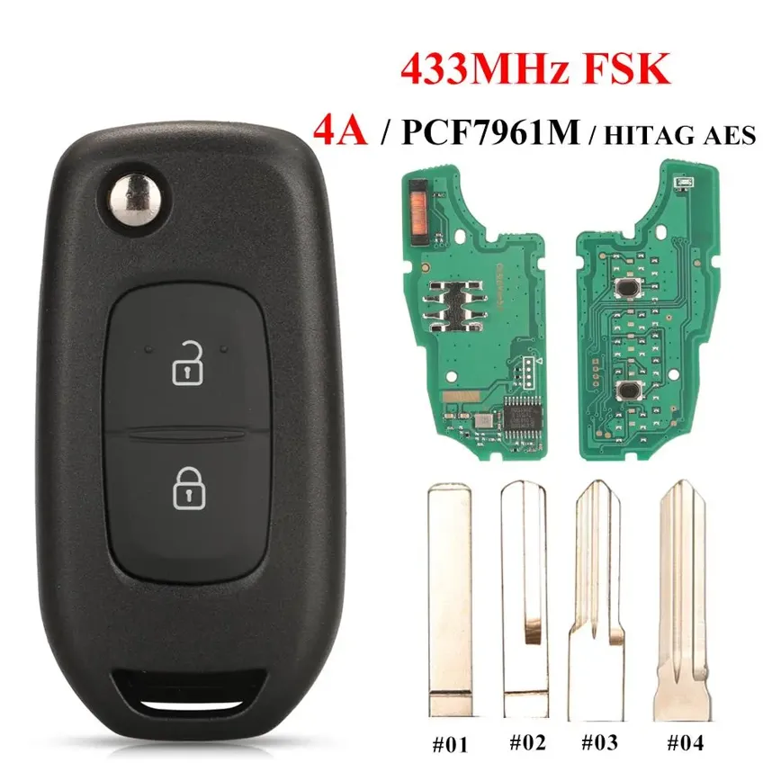 2 Buttons 433MHz PCF7961M 4A Chip Flip Remote Key for Renault Dacia Logan 2 II 2018 2019 2020 FSK Car Key Fob Control