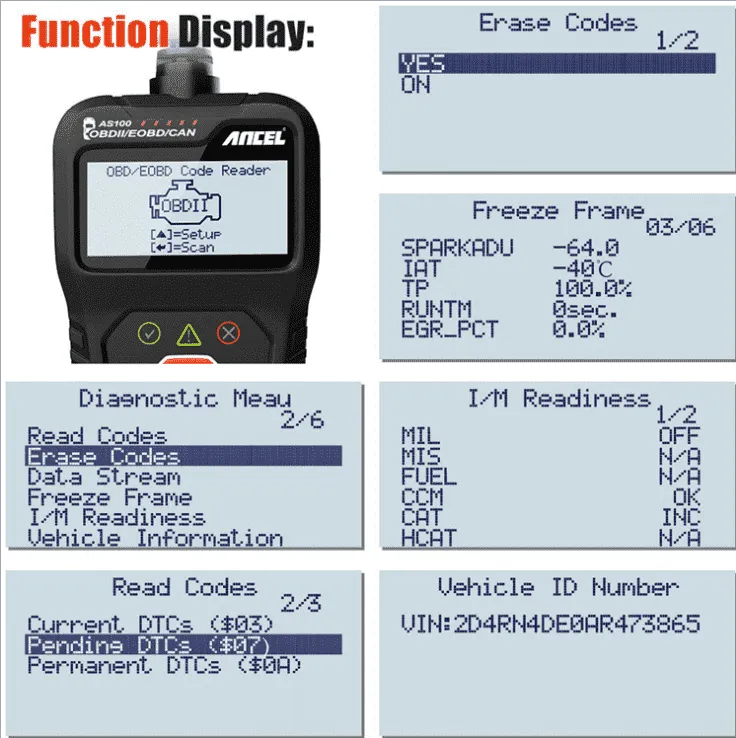 2.Erasing Codes & Reset Turns off Check Engine Light (MIL), clears codes and resets monitors.