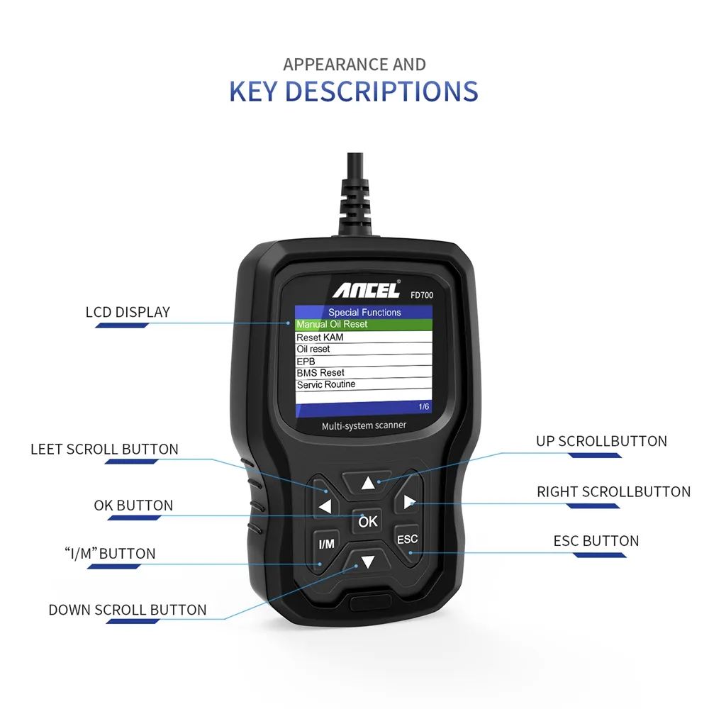 ANCEL FD700 OBD2 Scanner All System DPF EPB BMS ETC Oil Reset for Ford Multi languages Auto Diagnostic Car Diagnostic Tools