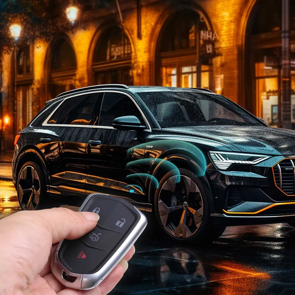 Buttons: Lock, Unlock, Trunk, Panic.
