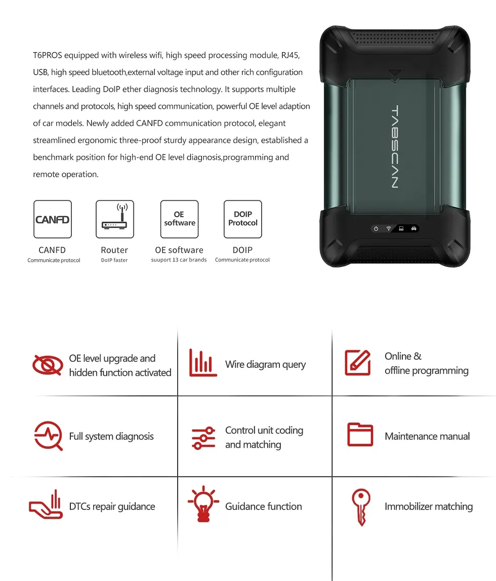 EUCLEIA TABSCAN T6 PROS CAN FD and DOIP all-in-one inspection Auto Diagnostic Programming Tool