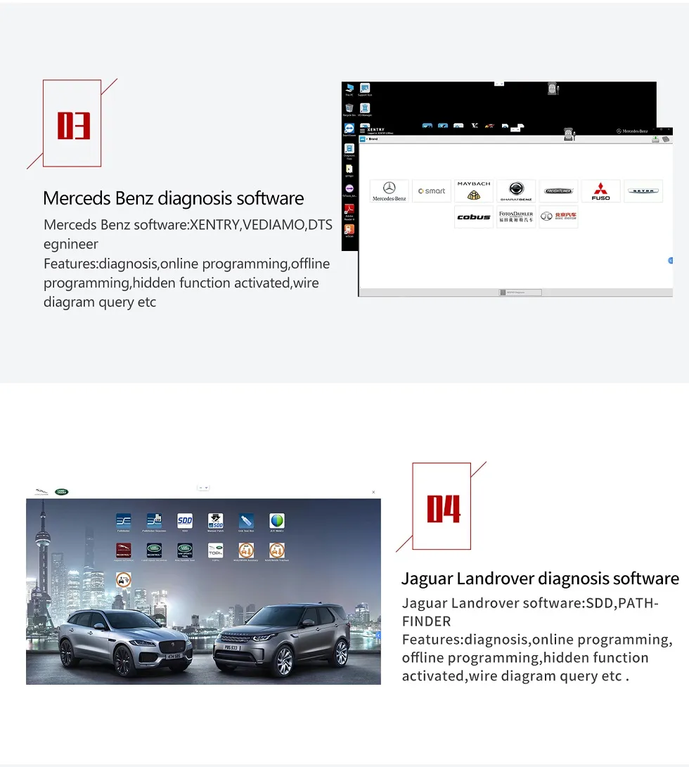 | Mercedes | Smart,MAYBACH,Benz,Sprinter | Xentry, DTS, Vediamo |