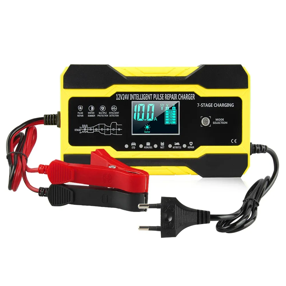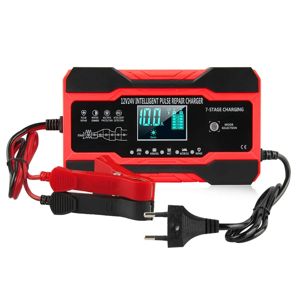 Fully Automatic Car Battery Charger 12V 10A Smart Fast Charging for AGM GEL WET Lead Acid Battery Charger LCD Display