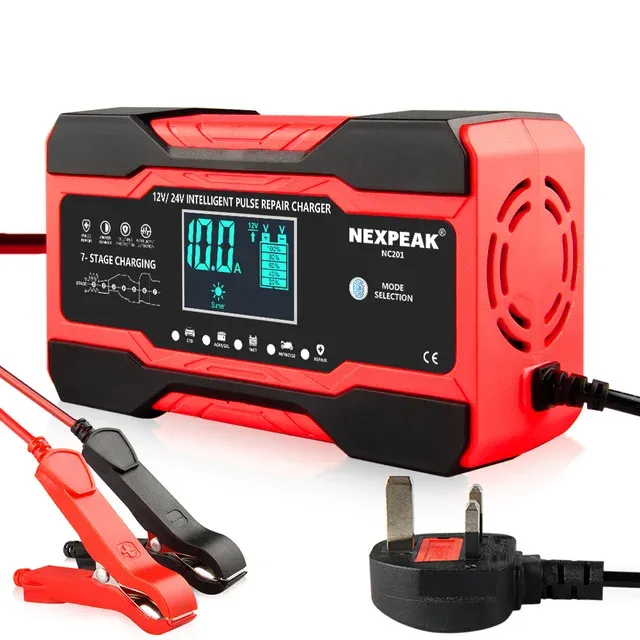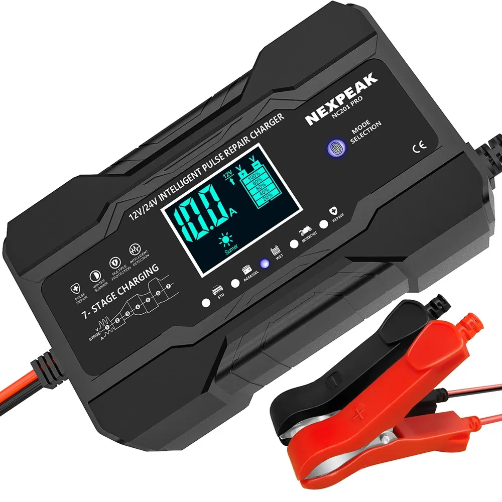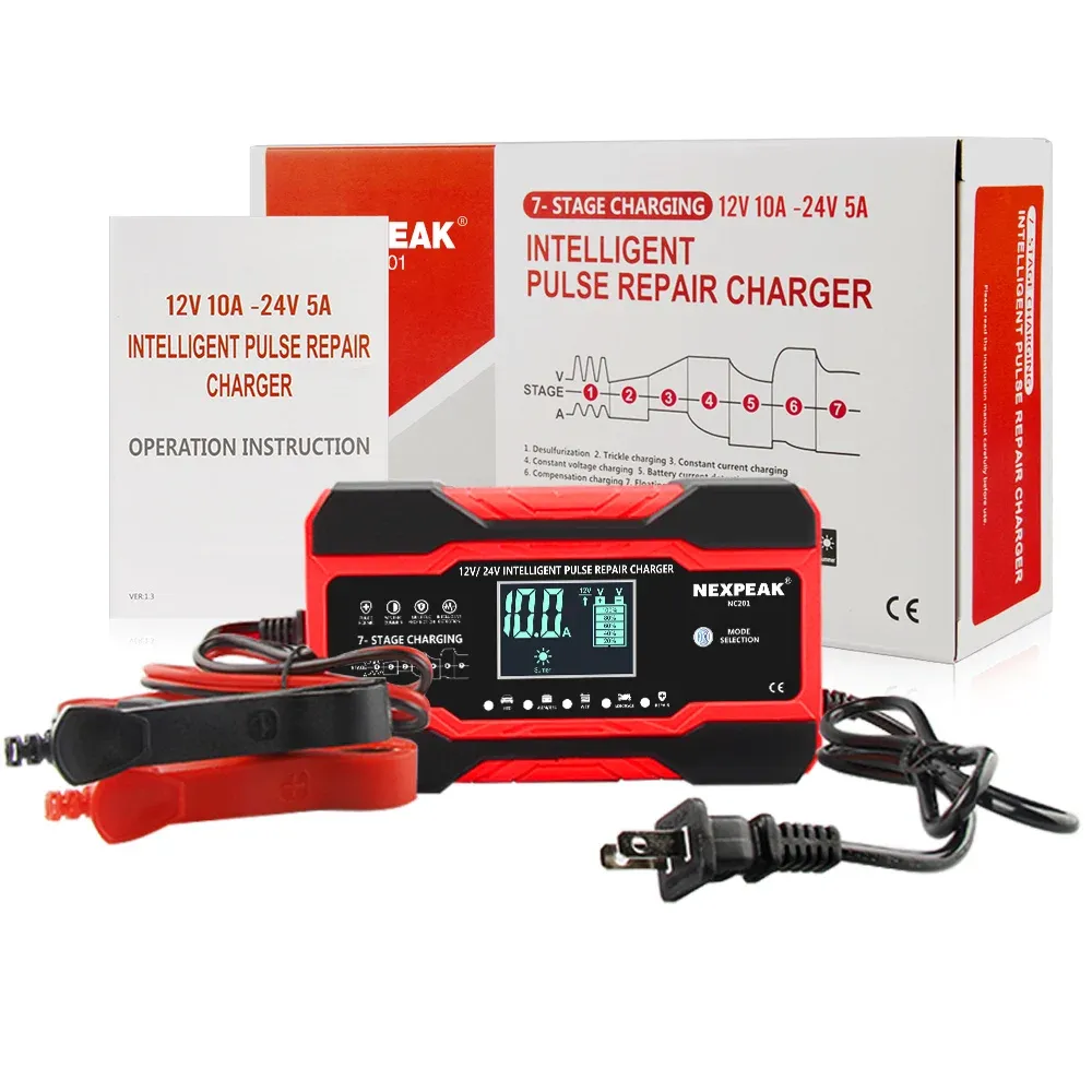 NEXPEAK NC201 Car Battery Charger 12v 10A 24v 5A Fully Automatic Wet Dry Lead Acid Power Puls Repair Automobile Battery Chargers