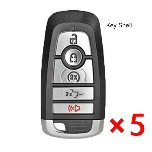 Smart Remote Key Shell Case With 5 Buttons + Uncut Insert Blade- FOB for Ford Fusion Explorer Expedition Edge Mustang- pack of 5