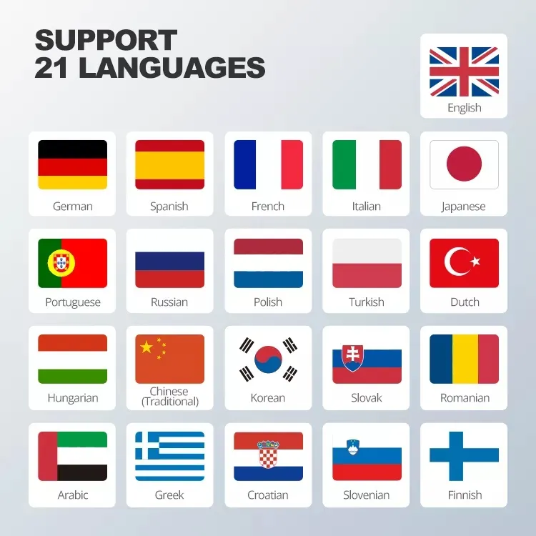 Supported 21 Languages: