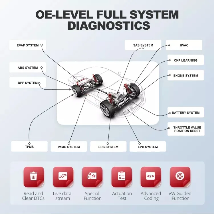 THINKTOOL Mastersupports OEM level diagnostics for passenger and commercial vehicles, such as read and clear DTCs, live data stream, special functions, actuation test, advanced coding& programming, maintenance reset and more.