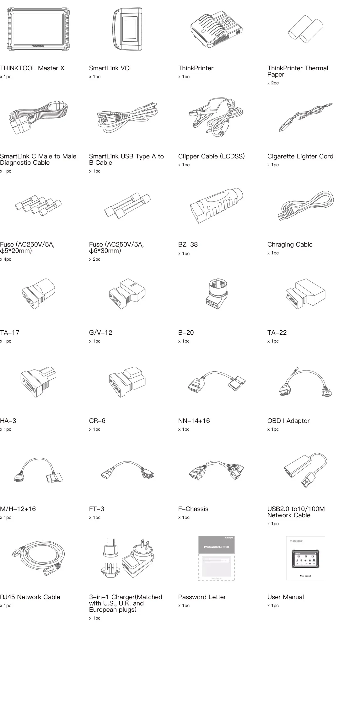1 x Thinkcar Adapter (equipped with American/British/European Regulations Pins)