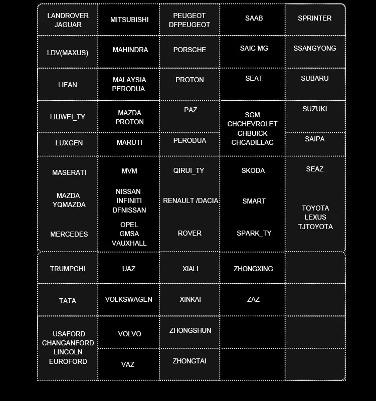 BOSCH, CATERPILLER, CUMMINS, DAF, DETROIT, DOOSAN, EICHER, HINO, HYUNDAI, INTERNATIONAL, ISUZU, IVECO, JCB, KAMAZ, KINGLONG, MAHINDRA, MAN, MAZ, MERCEDES-BENZ, MITSUBISHI, RENAULT, SCANIA, SCR SINOTRUK,SPRINTER, TATA, UD, VOLVO, WABCO, Demo, HD-OBD, AutoSearch, IRIZAR HD, SETRA HD, SITCAR HD, ALLISON GEARBOX, ASHOK LEYLAND, ASTRA , BENDIX ABS, BONLUCK BUS, BREMACH, CHAOCHAI HD, CREDO HD, DACHAI HD, DELPHI HD, DENSO DIESEL, DONGFENG YUFENG, EATON DIAGNOSTIC, ERF, FAW JIEFANG HD, FOTON AUMAN, FREIGHTLINER HD, FUSO, HANDE HD ABS, HD_ABS SYSTEM, HIGER BUS, IRISBUS, KENWORTH HD, MACK HD, NEOPLAN HD, PETERBILT HD, QUANCHAI HD, SHANGCHAI DISEL, STERLING HD, SUNLONG BUS, SUNWIN BUS, TOYOTA DISEL, USAFORD DISEL, WESTERN STAR HD, WP DISEL, XICHAI HD, YANGCHAI ENGINE, YUCHAI DISEL, ZHONGTONG BUS, YUTONG.