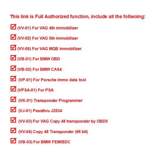 -Special transponder: Support use VVDI super transponder, it can use reusable, never lock;