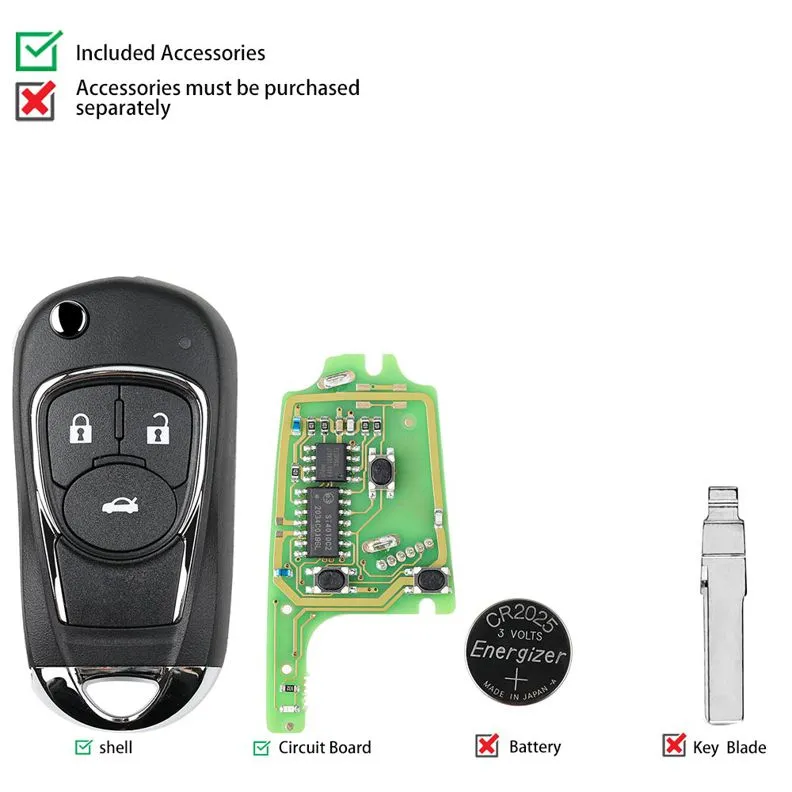 5pcs x Xhorse XKBU03EN Wired Remote KeyFlip3 Buttons Buick Style