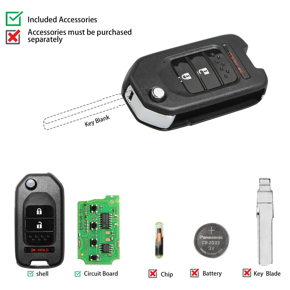 Xhorse XKHO02EN Wire Remote Key Honda Flip 2+1 Buttons English Version 5pcs/lot